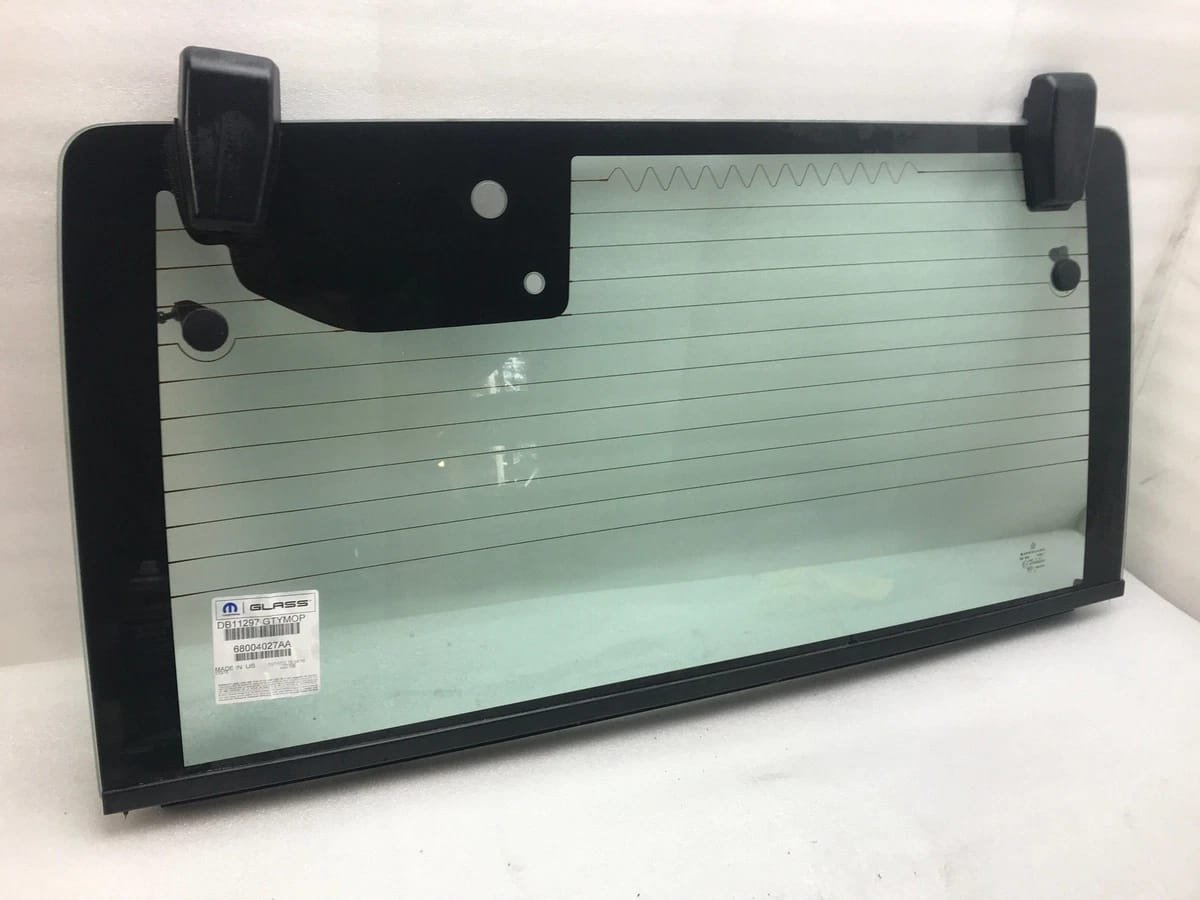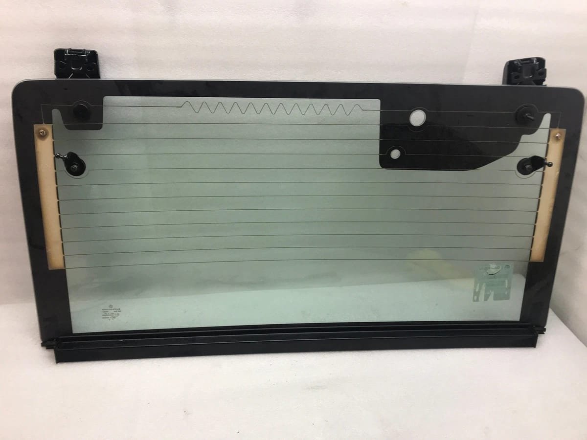 A heated rear tailgate window glass for a 2007-2010 Jeep Wrangler hardtop.