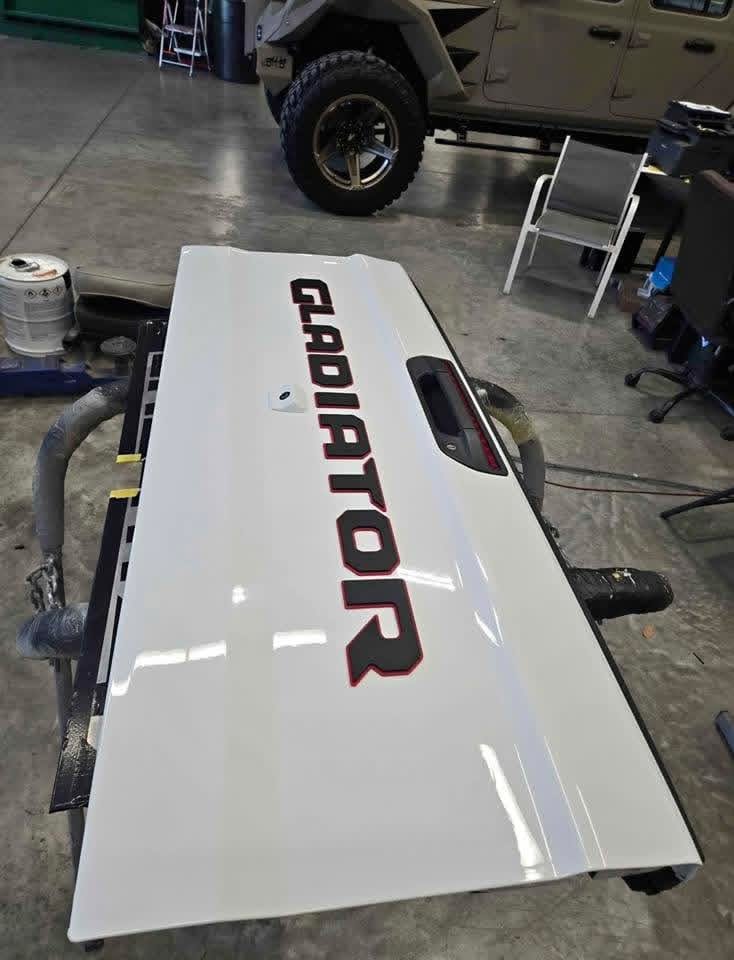White Jeep gladiator tailgate.